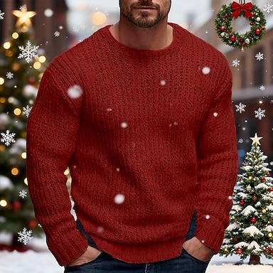 Férfi Karácsonyi pulóver Karácsonyi pulóverek Ünnepi pulóver Pulóver pulóver Bordázott Horgolás Kötött Normál felsők Kötött Sima Terített nyak Modern Kortárs Munka Hétköznapi viselet Ruházat Tél