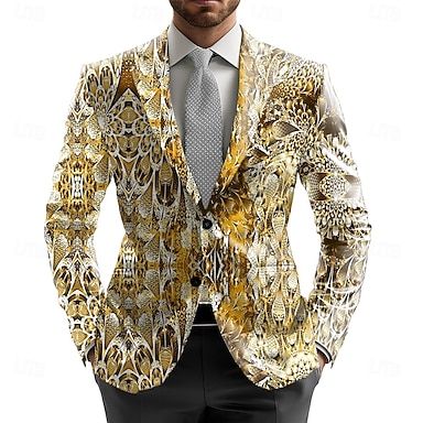 Férfi Blézer dzseki Előírásos Stílusos Alkalmi Napi Minden évszak 100% Poliészter fonás Ékszerekkel 3D nyomtatás Gombok Kényelmes Egysoros Sportkabát Rubin Arany Lóhere