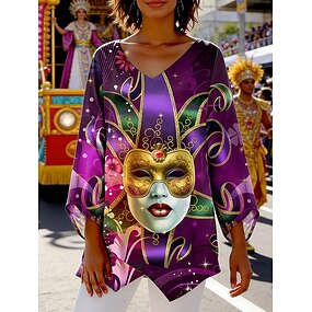 Carnival Női Póló Grafikus Stílusos Hétköznapi Hosszú Ujjú V Nyakú Normál Felsők Napi Gombos Nyomtatás Sárga Lila Zöld Ősz Tél
