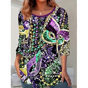 Mardi gras Női Póló Nyomtatott Grafika Szöveg Régies (Vintage) Csehország Szüret Divat Rövid ujjú Hosszú ujj Terített nyak Normál felsők Napi Hétvége Fekete Sötétzöld Bíbor Lóhere Bézs Nyár Tavasz Ősz