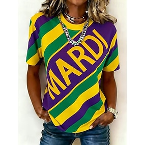 Mardi gras Női Póló Grafika Stílusos Alkalmi Rövid ujjú Aszimmetrikus nyak Normál felsők Napi Sport Hétvége Sárga Bíbor Nyár Tavasz