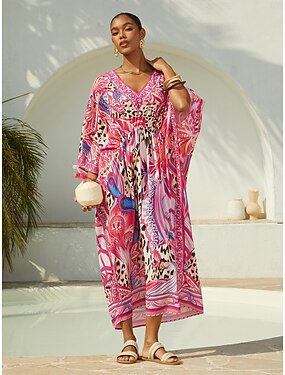 rózsaszín dzsungelparti lenge sifon gyémánt kaftán