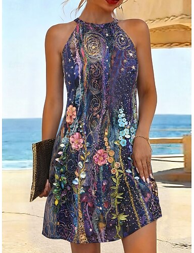 Mindszentek napja Női Térdig érő ruha A vonalú ruha nyári ruha Szabadság Alkalmi Normál Virágos Grafika Ujjatlan Kötőfék nyaka Rubin Bíbor Lóhere Nyár Tavasz