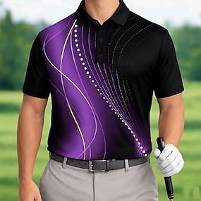 Férfi Golf Sportpólóingek Rövid ujjú Pólóingek Galléros ingek Alkalmi Szabadtéri Sport Hétköznapi viselet 3D nyomtatás Nyár Medence Rubin Bíbor