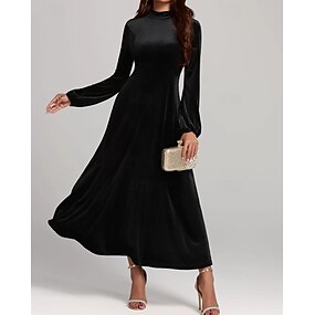 Női Mini ruha Karácsonyi ruha Bársony ruha Koktélruha A vonalú ruha Alkalmi Estély Parti Utca Normál Sima Hosszú ujj Körgallér Fekete Bor Lóhere Ősz Tél