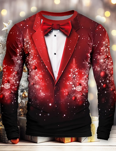 Karácsony Férfi Karácsonyi öltözék Tuxedo Póló Hosszú ujj póló 3D nyomtatás Terített nyak Ing Divat Alap 3D Utca Hétköznapi Napi Rubin Nyár Tavasz Ruházat S M L XL XXL XXXL