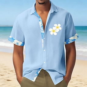 Férfi Virágos Trópusi virágok Hawaii ing Aloha ing Nyomtatott ingek Rövid ujjú Ing Álló gallér Hawaii Üdülő Szabadtéri Vakáció Hétköznapi viselet Medence Lóhere Világoskék S M L