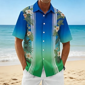 Férfi Gradiens Virágminta Virágok Hawaii ing Gombos póló Aloha ing Rövid ujjú Hawaii Szabadság Strandruházat Nyár Tavasz Térfogatcsökkenés 3D nyomtatás galléros ingek Első egy zseb Fehér Sötétkék