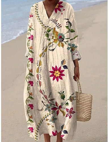 Női Maxiruha Váltó ruha Alkalmi Alkalmi Laza öltözet Virágos Grafika Rövid ujjú V-alakú Bézs Nyár Tavasz