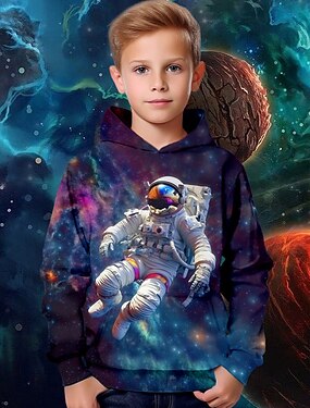 Fiú 3D Grafika Galaxis Hely Kapucnis felsőrész Hosszú ujj 3D nyomtatás Tavasz Ősz Tél Divat Utcai sikk Menő Gyerekek 3-12 év Szabadtéri Hétköznapi Napi Normál