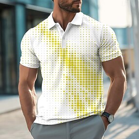 Férfi Absztrakt Geometriai Póló Rövid ujjú Pólóingek Hajtóka Üzleti alkalmi Üzleti Sportruházat 3D nyomtatás Gombok Nyár Kék tó Fehér Sárga