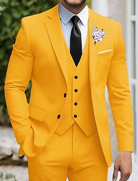 Férfi Esküvő Party estélyi viselet ruhák Sárga Zsálya Ruhák Egyszínű Karcsúsított 3 részes készlet Egysoros két gombos