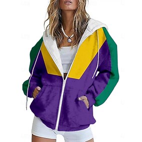 Báli Női Cipzáras Kapucnis Pulóver Grafikus Geometrikus Absztrakt Divat Utca Hétköznapi Hosszú Ujjú Kapucnis Rendszeres Felsők Hétköznapi Mindennapi Öltözködés Kimenet Cipzáras Cipzár Zseb Sárga Lila