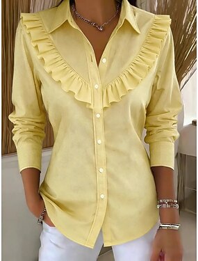 Női vászon-szerű műpamut blúz fodros gombokkal egyszínű elegáns stílusos alap hosszú ujjas ing nyakú normál felsők napi kék sárga világoszöld piros világoslila tavasz ősz tél