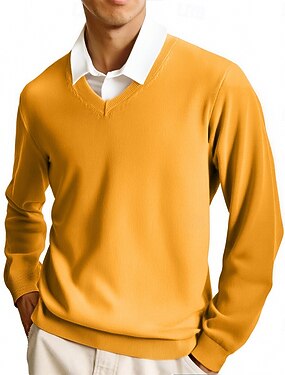 Férfi Ruha Pulóver Pulóver pulóver Bordázott Kötött Normál felsők Klasszikus stílus Kötött Sima V-alakú Divatos és modern Modern Kortárs karácsony Munka Ruházat Tél Sárga Medence S M L