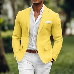 Férfi Vászonblézer Sport kabát Bevágás gallér Divat Alkalmi Egyszínű Sárga Narancssárga Bézs Standard Egysoros egy gombos