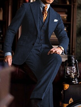 Férfi Esküvő Üzleti Esküvői öltönyök Sálhajtóka Sötétkék Előírásos Egyszínű Karcsúsított 3 részes készlet