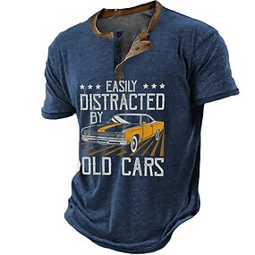 Férfi rövid ujjú henley grafikus póló Nyugdíjas utólagosan átalakított piaci alkatrészek humora