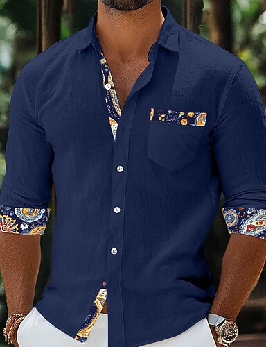 Férfi Ing Vászon ing Nyári póló Strandruházat Gombos póló Sima Vakáció Hétköznapi Fekete Arcpír rózsaszín Sötétkék Lóhere Hosszú ujj Térfogatcsökkenés Tavaszi nyár Ruházat