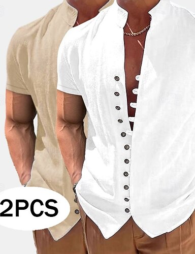 Férfi Vászon ing Bandgalléros ing Nyári póló Strandruházat Alkalmi ing Sima Vakáció Hétköznapi Fehér+Sárga Pink + Sárga Fehér + zöld Szürke + Rózsaszín Rövid ujjú Mandarin gallér Nyár Tavaszi nyár