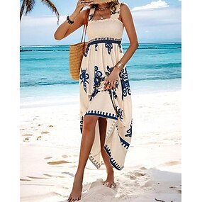 Női Hosszú ruha Maxi ruha hétköznapi ruha A vonalú ruha nyári ruha Boho ruha Csehország Hawaii Stílusos Vakáció Napi Randi Normál Grafika Ujjatlan Szögletes Fekete Arcpír rózsaszín Rubin Lóhere Nyár