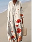 Női Midi Ruha V Nyak Hosszú Ujjú Kaftán Könnyű Laza Fit A vonalú Ruha Kényelmes Boho Parti Kimenő Virágos Grafikus Hosszú Ujjú V Nyak Szürke Zöld Sötét Rózsaszín Off-white Rózsaszín Fehér
