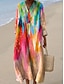 Női Midi Ruha V Nyakú Hosszú Ujjú Kaftán Könnyű Laza Fit A Vonás Ruha Menő Bohém Menő Grafika Geometrikus Csíkos Hosszú Ujjú V Nyak Narancs Piros Fekete Sárga Rózsaszín