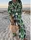 Női Midi ruha A vonalú ruha Szabadság Alkalmi Napi Estély Parti Normál Grafika Mértani Hosszú ujj V-alakú Sötétrózsaszín Rubin Barna Lóhere Nyár Tavasz Ősz