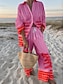 Női Ing Pamut ágynemű készletek Kétrészes szettek Strand rövidnadrág Féhosszú V-alakú Tömör szín Zsinór Divat Utcai sikk Hétköznapi viselet Randi Medence Sötétrózsaszín Khakizöld Nyár Normál