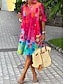 Női diplomázási ruha midi ruha két részes ruha szett alkalmi ruha mintás ruha elegáns divat ombre virágminta 3/4-es ujjú crew neck kültéri napi rózsaszín sötét rózsaszín kék nyári tavasz