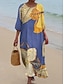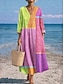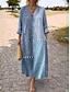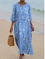 Női Maxi Ruha Vászon Hasonló Lélegző Könnyű Nyári Ruha Átmeneti Ruha A Vonalú Ruha Nyári Ruha Vakáció Hétköznapi Boho Napi Strandon Ünnep 3/4 Hosszú Ujjú Kerek Nyakú Csónak