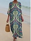 Női Maxiruha Nyári ruha Rakott ruha Szabadság Alkalmi Boho Alkalmi Tengerpart Virágos Grafika Paisley Hosszú ujj V-alakú Mély zöld Bor Sötétrózsaszín Medence Nyár Tavasz