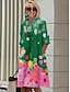 Női Midi ruha Pólóruha Szabadság Születésnap Alkalmi Tengerpart Alkalmi Laza öltözet Grafika Absztrakt Hosszú ujj Hajtóka Medence Sötétrózsaszín Lóhere Nyár Tavasz