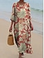 Női Maxiruha Váltó ruha Alkalmi Napi Alkalmi Laza öltözet Virágos Grafika Hosszú ujj V-alakú Sötétrózsaszín Bíbor Narancssárga Bézs Nyár Tavasz