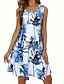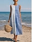 Női Midi Ruha Vászon Szerű Napsugár Ruha Elasztikus Ruha A-vonalú Ruha Vakáció Hétköznapi Boho Tengerpart Kimenő La szabad Illeszkedés Grafikus Geometrikus Ujjatlan Kerek Nyak Kék Fehér Sárga