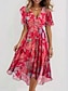 Női Midi ruha A vonalú ruha Alkalmi Szabadtéri Alkalmi Normál Virágos Rövid ujjú V-alakú Medence Arcpír rózsaszín Sötétrózsaszín Rubin Nyár Tavasz