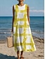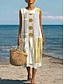 Női Midi ruha Nyári ruha Váltó ruha A vonalú ruha Szabadság Alkalmi Boho Tengerpart Alkalmi Laza öltözet Grafika Mértani Ujjatlan Kerek nyakkivágás Medence Fehér Sárga Arcpír rózsaszín Nyár Tavasz