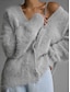 női túlméretezett kardigán fuzzy v nyakú kötött ősz tél munka hétvége elegáns divat utcai viselet hosszú ujjú egyszínű rózsaszín világosszürke