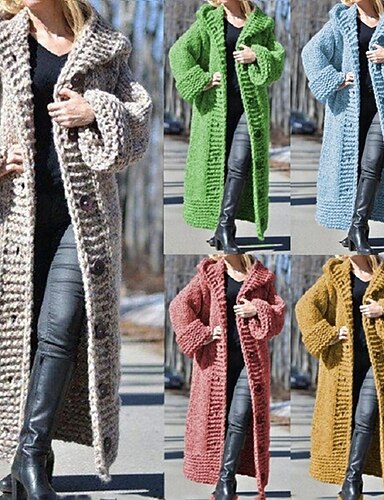 Női Kardigán Stílusos Alkalmi Puha Tiszta szín Vaskos Kapucni Gombok Kötött Kapucni Hosszú ujj Hosszú felsők Kötött Szabadtéri Napi Szabadság Sárga Rubin Ősz Tél