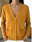 Női Pulóver Kardigán Napi Stílusos V-alakú Gombok Kötött Hosszú ujj Normál felsők Kötött Otthon Sport Napi Fekete Sárga Tavasz Ősz