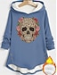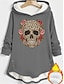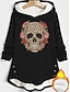 Női Pulóver Hoodie pulóver Koponya Meleg Alkalmi Hosszú ujj Kapucni Hosszú felsők Utca Hétköznapi Szabadság Gombok Nyomtatott Fekete Sötétrózsaszín Medence Szürke Ősz Tél
