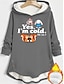 Női Pulóver Hoodie pulóver Cica Szöveg Meleg Alkalmi Hosszú ujj Kapucni Hosszú felsők Utca Hétköznapi Szabadság Gombok Nyomtatott Fekete Sötétrózsaszín Medence Szürke Ősz Tél
