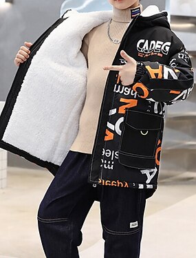 Gyerekek Fiú Parka Felsőruházat Szöveg Hosszú ujj Kabát Szabadtéri Pamut Divat Menő Medence Narancssárga Ősz Tél 7-13 év