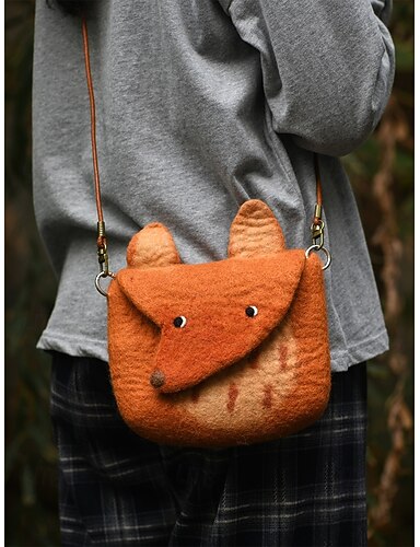 női filc crossbody táska, aranyos róka alakú válltáska, vintage kézzel készített állatmintás kézitáska hölgyeknek alkalmi mindennapi utazáshoz