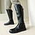 Férfi fekete műbőr térdig érő lovaglócsizma sima felülettel, klasszikus magas szárú elegáns csizma színpadi fellépéshez és alkalmi viselethez
