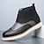 férfi fekete-fehér brogue csizma – stílusos, kétszínű műbőr dizájn, kényelmes hétköznapi lábbeli, ideális elegáns és téli öltözékhez