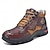 Férfi barna műbőr túrabakancs tartós gumitalppal és kézzel varrott részletekkel, kényelmes hétköznapi munkásbakancs túrázáshoz és mindennapi viseletre
