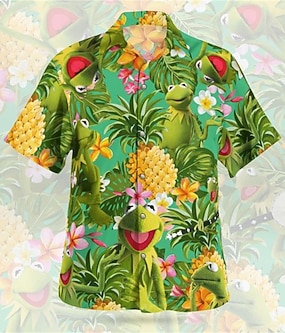 Férfi Virágos Ananász Béka Ing Hawaii ing Aloha ing Rövid ujjú Ing Térfogatcsökkenés Hawaii Dizájn Alkalmi Szabadtéri Utca Hétköznapi Piros zöld Oliva zöld Arcpír rózsaszín 3D nyomtatás S M L