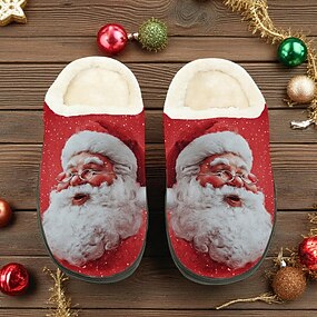 Férfi mikulás mintás polár papucs, vicces karácsonyi rajzfilmfigura beltéri cipő, meleg plüss házipapucs, tökéletes téli ünnepekre és ajándékozásra