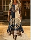 Női Maxi Ruha Nap Ruha A Szabású Ruha Nyári Ruha Üdülés Kasuális Tengerparti Napi Üdülés Kimenő Laza Fit Grafikus Geometriai Vászon Mintás Rövid Ujjú Kerek Nyakú Hajók Nyak Sötétbarna Világosbarna